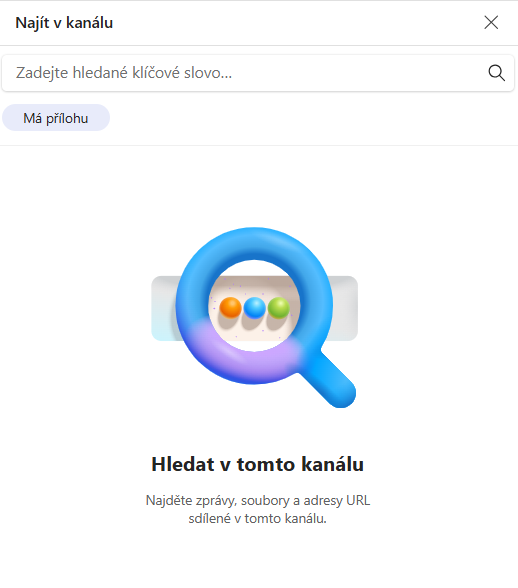 Stisknutím kombinace kláves Ctrl+F můžete vyhledávat zprávy v konkrétním chatu nebo kanálu v Microsoft Teams.