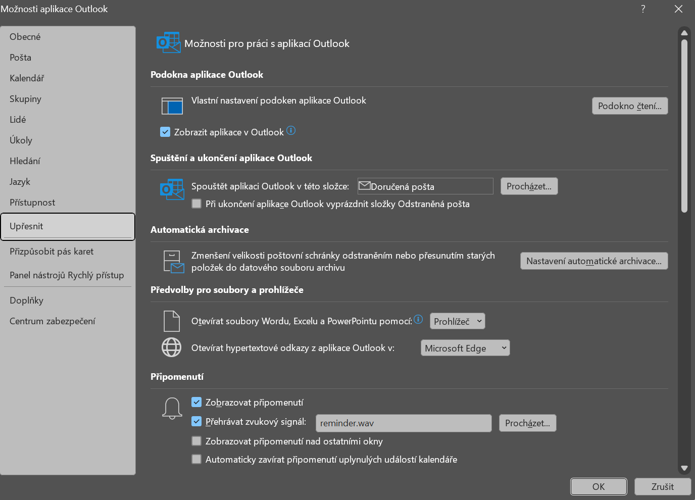 1. Soubor → Možnosti → Upřesnit → Nastavení automatické archivace.